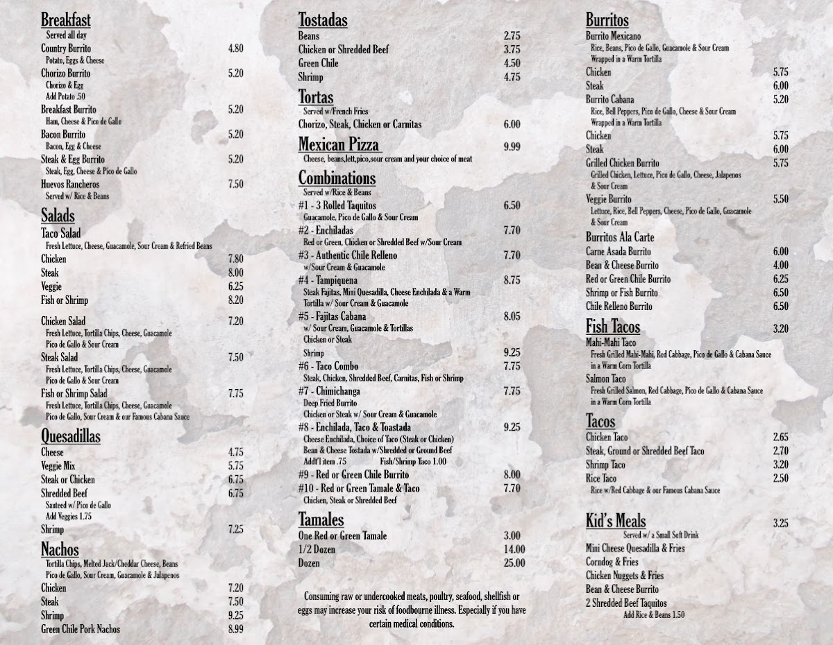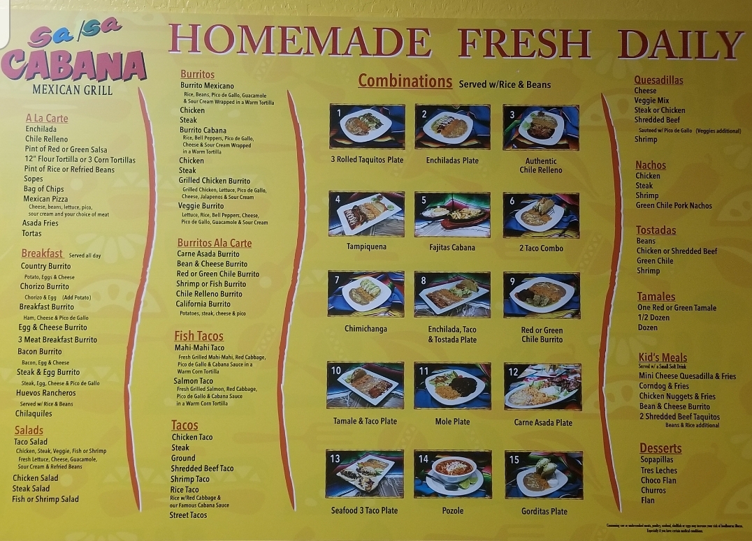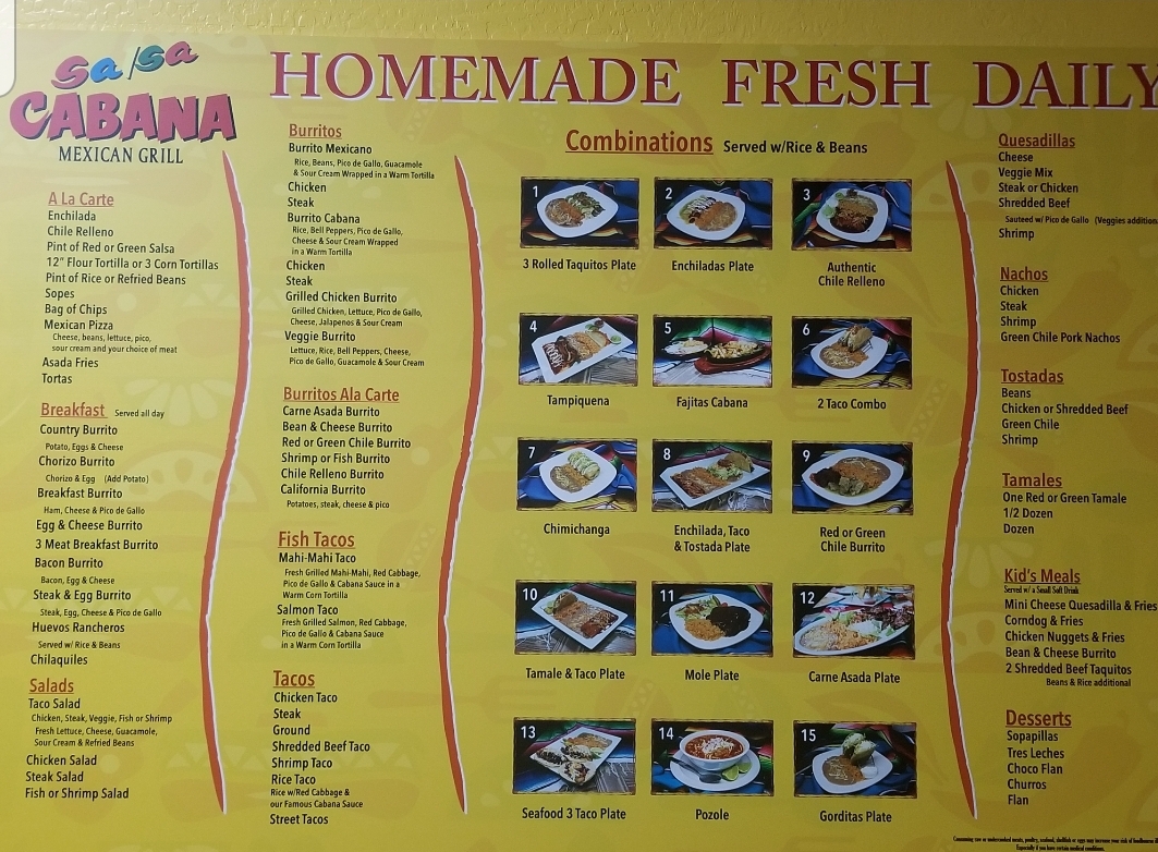 Salsa Cabana Mexican Grill Menu